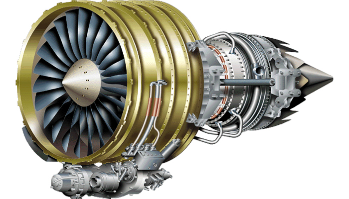 This engine has two high pressure axial flow stages that drive the N2 compressor, and four low pressure stages that drive the N1 fan.