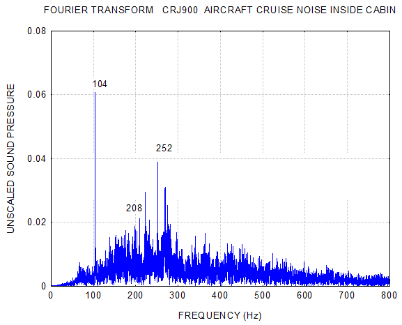 I made an audio recording from within the aircraft cabin during cruise, after hearing some distinct sine tones against the background random noise. The audio file is: crj900.wav