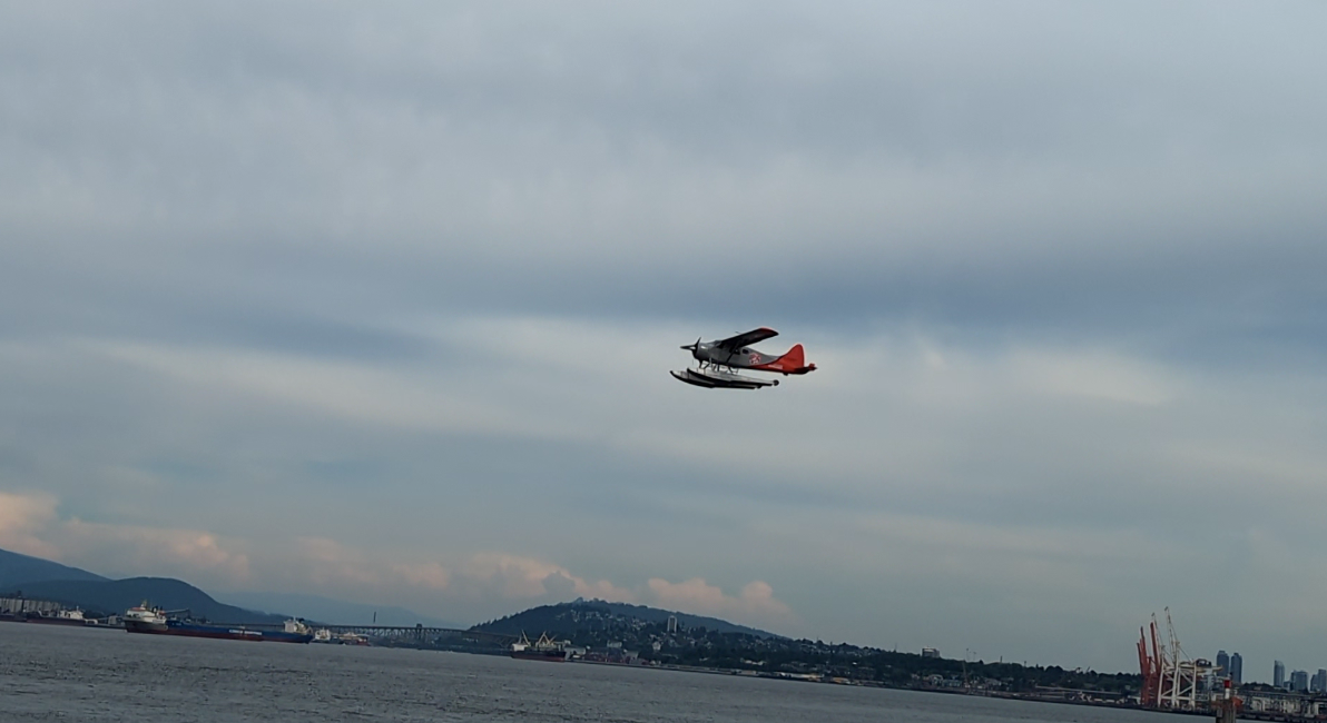 The aircraft is a De Havilland Canada DHC-3 Otter, Single Engine, Seaplane. It is powered by a Pratt & Whitney R-1340 Wasp, 600 hp, air cooled, radial engine with a propeller hub speed of 2250 rpm (37.5 Hz). This aircraft is used for tours and transportation, operated by Harbour Air. The image is extracted from a video taken from Vancouver’s Stanley Park.